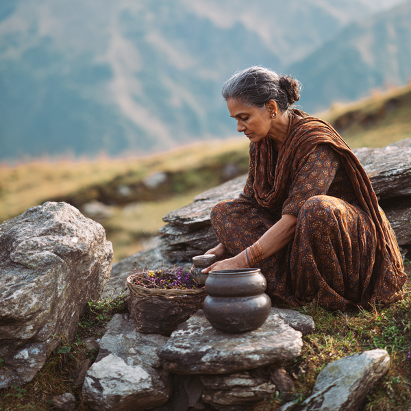 Depuis des générations, elles utilisent une substance naturelle très rare, qui provient des montagnes. Lorsque le soleil chauffe les parois rocheuses, une résine noire très épaisse coule des fissures. Certains l'appellent "le sang de la montagne". Cette matière si rare et si prisée est récoltée avec précaution.
