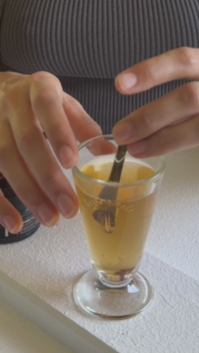Versez de l'eau tiède dans un verre (pas plus de 45°C pour conserver les bienfaits du Shilajit).