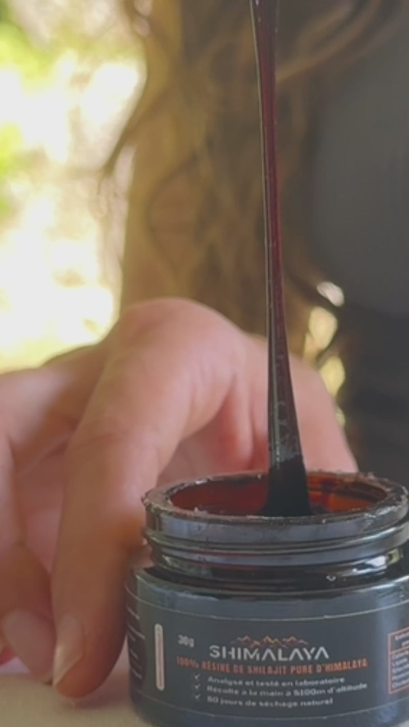 Le Shilajit est une résine naturelle qui se forme dans les montagnes de l'Himalaya depuis des millénaires. C'est le résultat de la décomposition de plantes et de matières végétales sous pression. Il contient 85 minéraux et beaucoup d'acide fulvique, qui aide votre corps à mieux absorber les nutriments.
